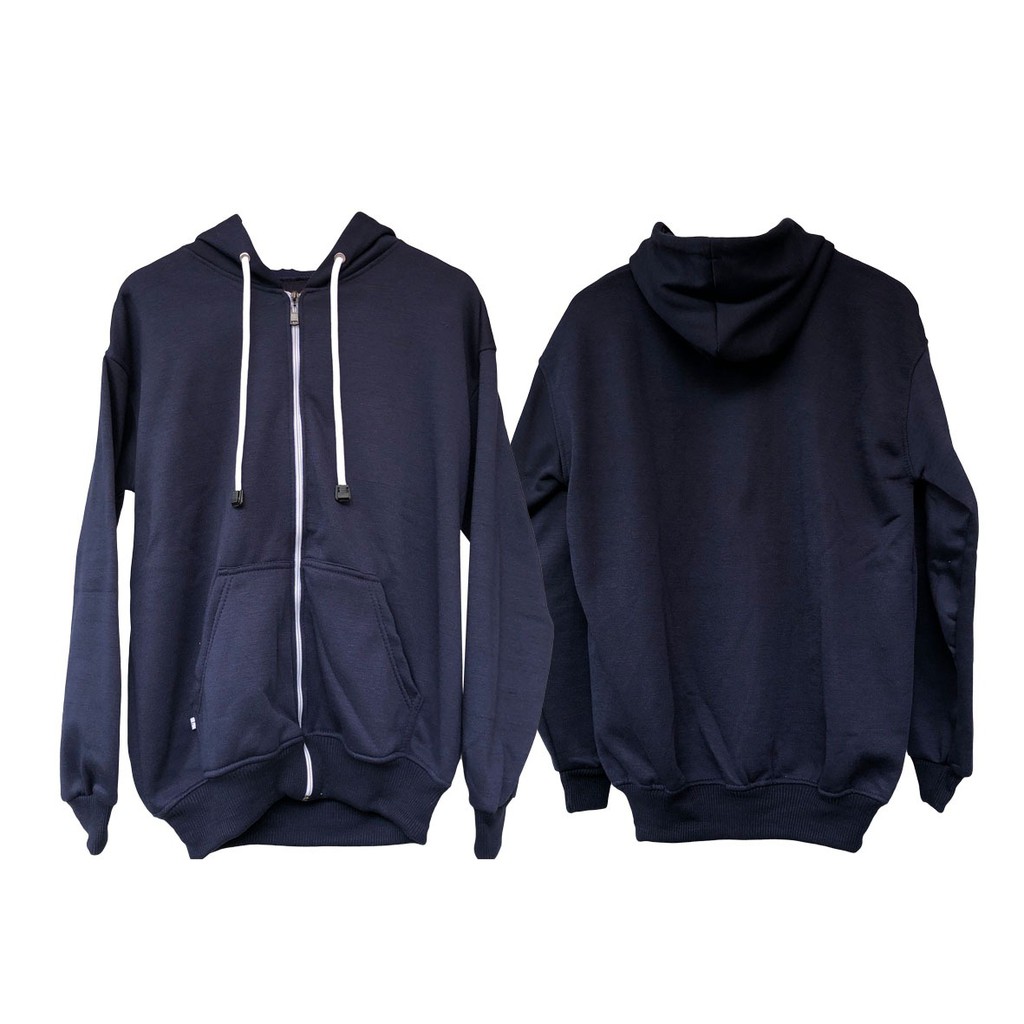 Jaket Hoodie Zipper Polos Flecee Biru Navy Biru Dongker Pria Wanita Premium Quality Shopee Indonesia